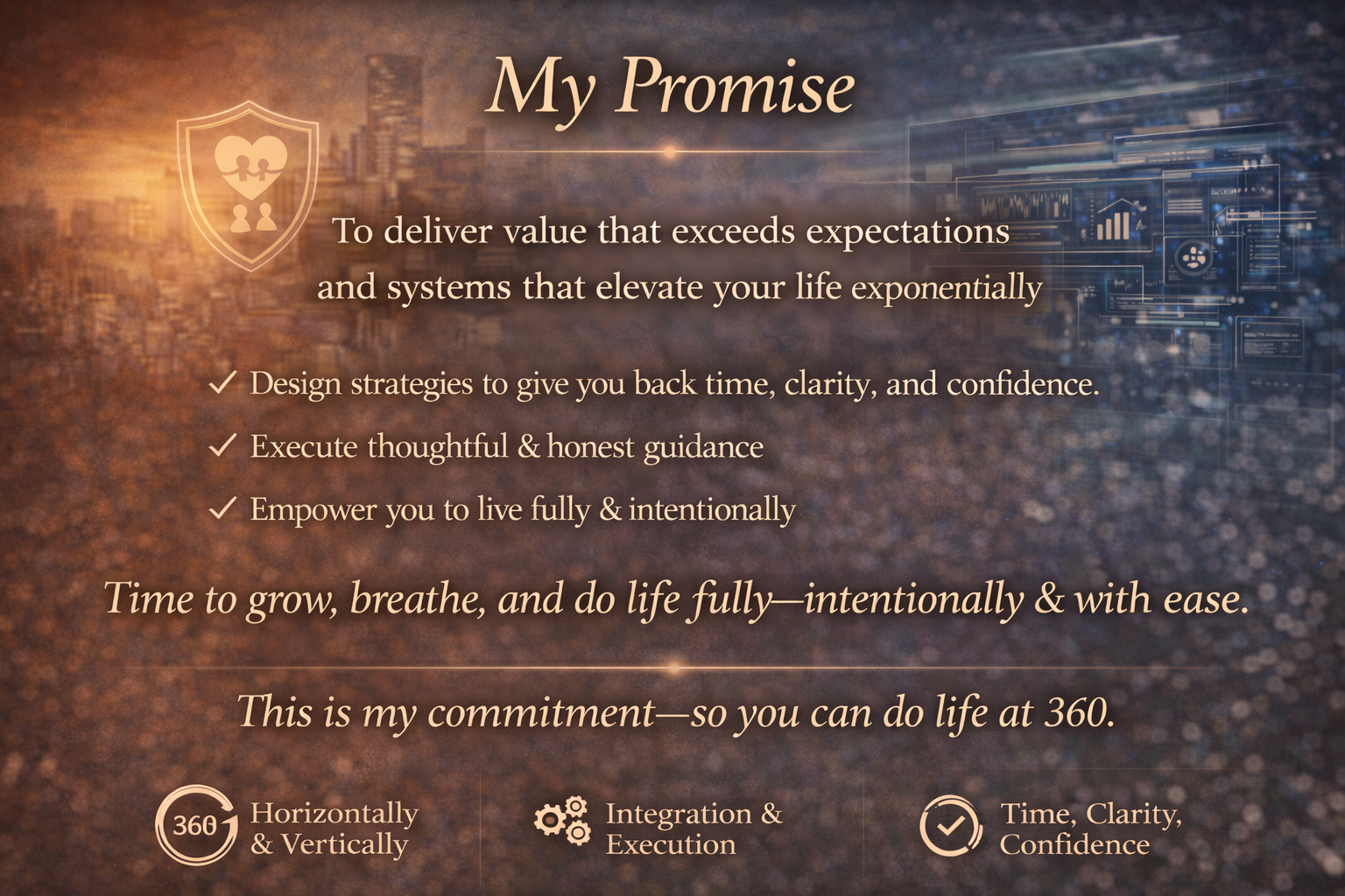 My promise is simple: to deliver value that exceeds expectations and systems that elevate your life exponentially.